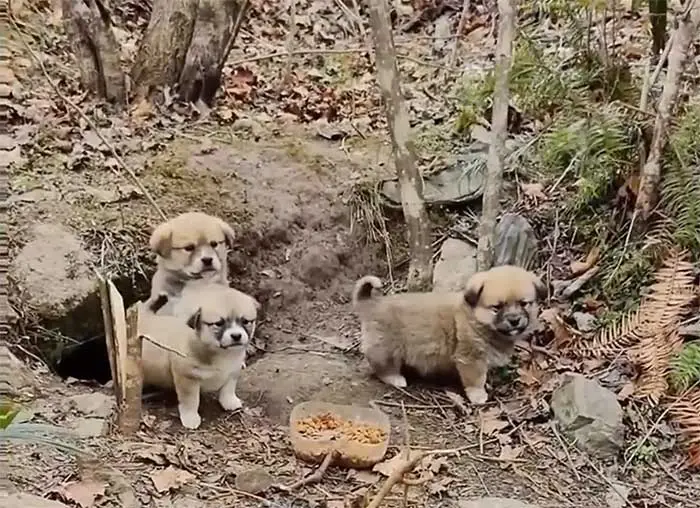As she stood on the fringe of the highway, this devoted dog displayed an uncommon urgency that caught the attention of some compassionate passersby. Whereas many vehicles sped by, a number of kind-hearted people observed her determined gestures. It grew to become clear that she was main them someplace particular, not merely in search of meals for herself. Her willpower impressed the group to comply with her down a secluded path, the place they found her hidden treasure: 5 tiny, trembling puppies huddled collectively in a makeshift den. The scene was heartwarming, showcasing the mom’s unwavering devotion and instinctive want to guard her younger.