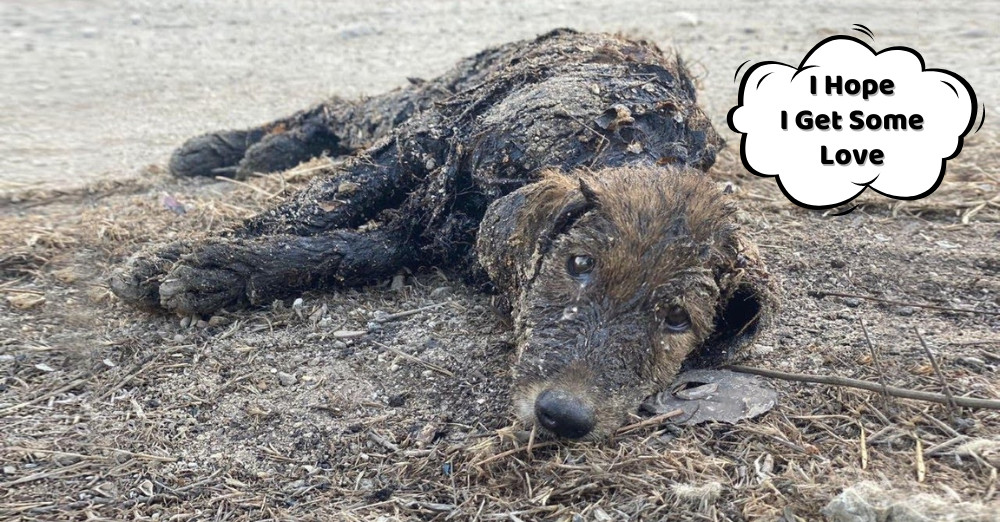 Covered in thick black oil, Hope’s body was motionless, except for the faintest rise and fall of her ribcage. Eleni dropped to her knees. “Oh, sweetheart,” she whispered, reaching out gently, not knowing if the dog was alive or already fading. Hope flinched at the touch, proving she hadn’t given up yet.