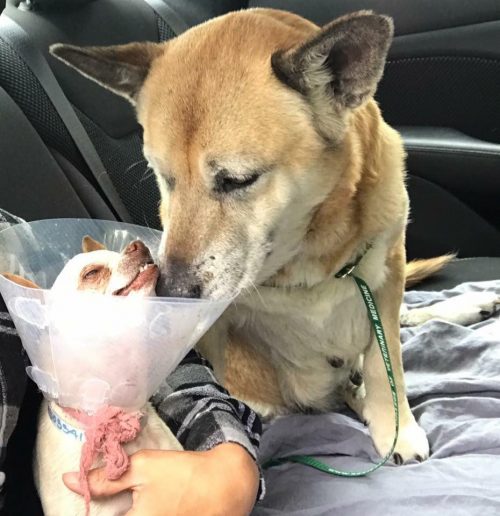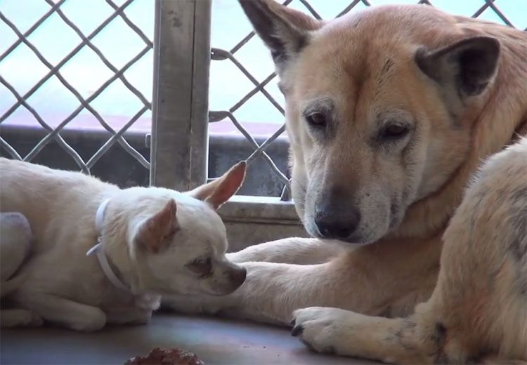A tiny dog stays faithfully by her nearly blind brother’s side, protecting him and refusing to leave after they were abandoned at a shelter