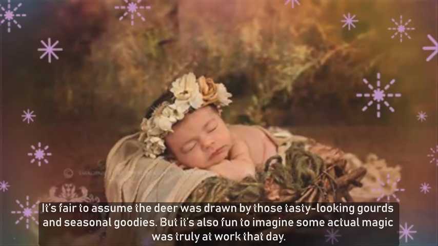 Then, that’s when a shy, hesitant deer interrupted the photo shoot, particularly appearing interested in Baby Connor resting on the hay bale. Before you know it, Megan got the perfect shot with the sweet deer behind the sleeping child, perfectly centered and slightly leaning downward as if the animal is intentionally posing for the camera. My eyes couldn’t believe it!