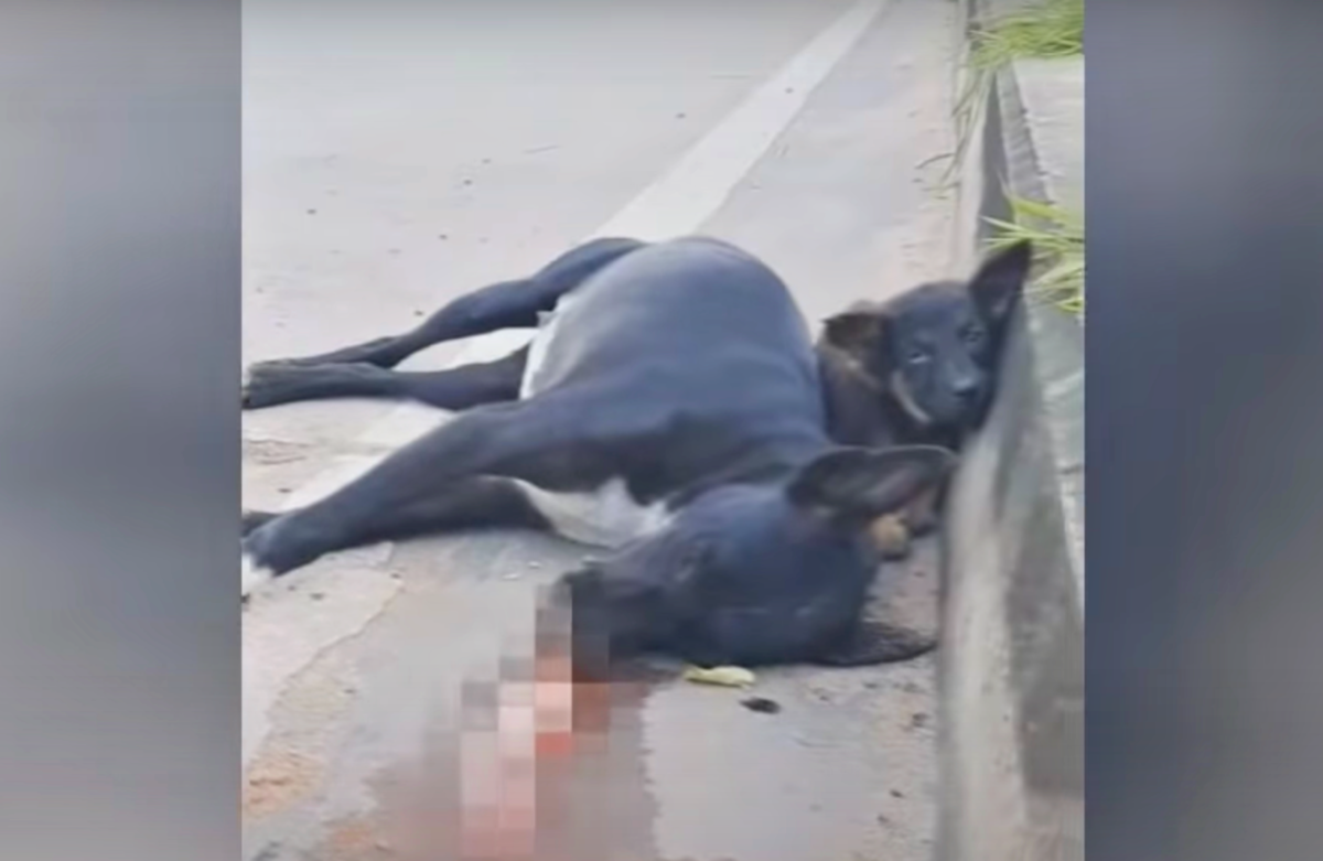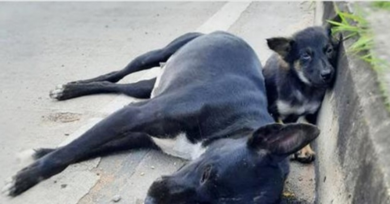 Stray animals struggle daily in order to survive. For one mama dog, finding enough food for her and her puppy proved deadly. She tried to cross a busy highway but was tragically hit by a car. She died instantly so she did not suffer but her baby had no idea what was going on. He was scared and alone. He clung to his mama hoping she’d wake up.