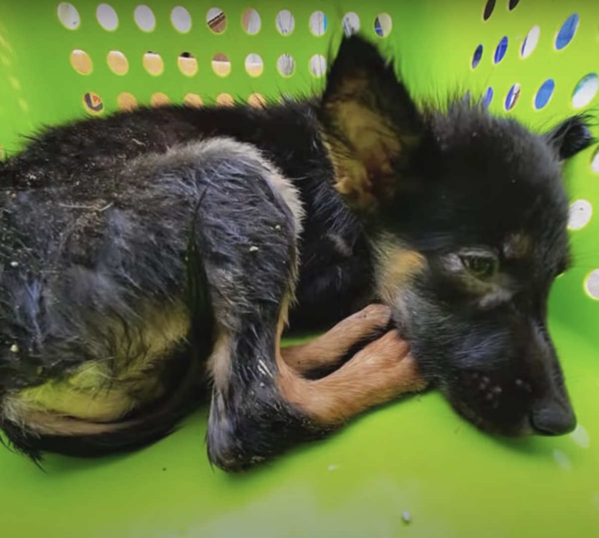 The rescuers took both dogs and put them into their vehicle. First, they tried to give the puppy some formula but he wanted nothing to do with it. He continued to cry and huddle into the corner of the cage. Even with their kind words and all the comfort the rescuers could muster, the puppy only wanted his mom to come back.