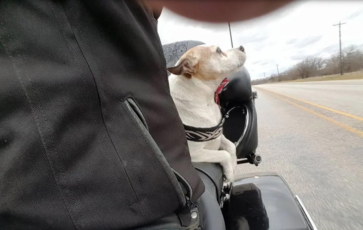 Biker sees man beating dog on highway so he rescues him and makes him his new co-pilot