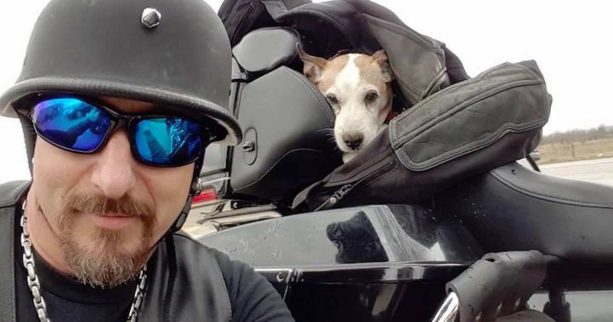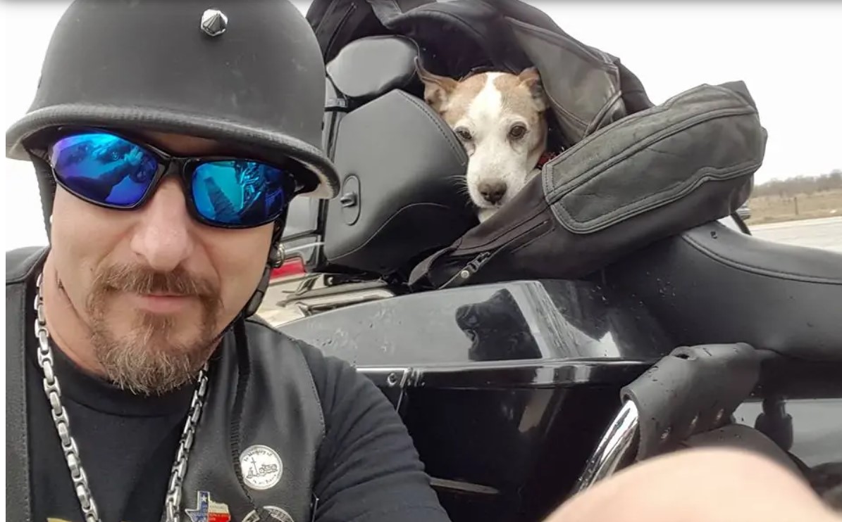 Turnbow knew he had to move quickly, but he didn’t want to scare the dog even more. So, before he went back on the road, he turned on the motorcycle to help the pup get used to the vibrations. Once the dog seemed comfortable, Turnbow put the little Jack Russell into his bag.