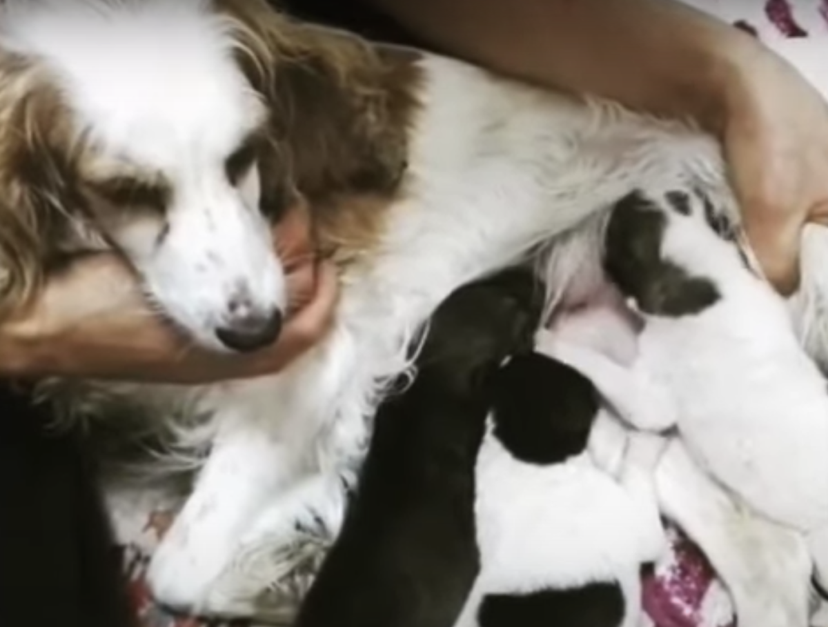 Finally, by some miracle, a local rescuer heard about the dog and her babies and rushed to help. Flower was brought to the closest animal clinic and endured a six-hour long surgery. While Flower continued to rest and recover, another sweet dog stepped in to care for the puppies. Even though she wasn’t their biological mom, she still nursed them and loved them.