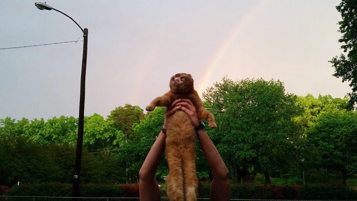 “Most cats are independent and aloof, but he likes to be with other animals”