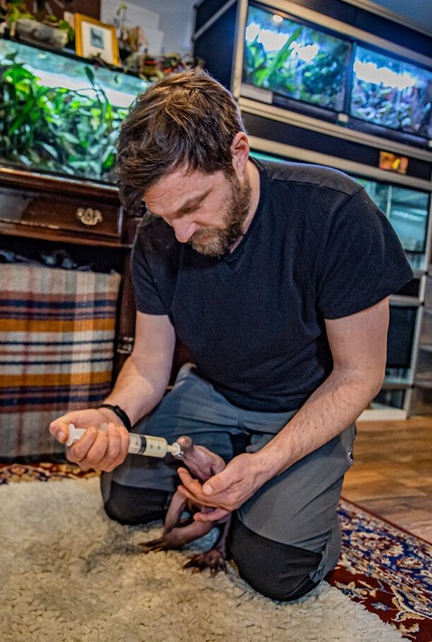 “Aardvark parents are notorious for being a little clumsy around their newborns. With the baby being so tiny and fragile, we’re therefore protecting it from any accidental knocks and bumps by helping mum out with supplementary feeding sessions throughout the night, just until the calf is a little stronger.