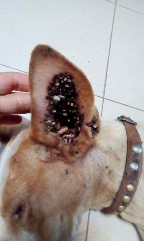 The deplorable state in which they were found by the police authorities of the Civil Guard showed that the canines had been in such an unfortunate situation for some time; they were weak, literally in the bones and their bodies, but mainly their ears were mined by ticks.