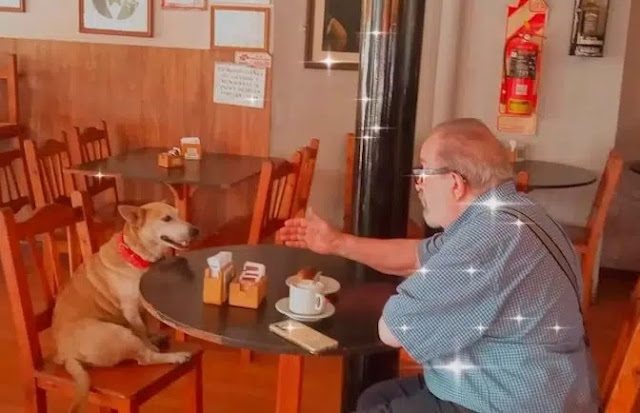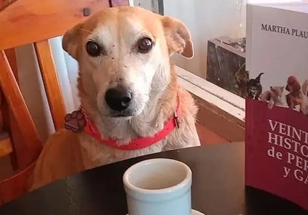 Many people might assume the dog is begging for food or something, yet the dog just sits and walks with people. When others speak to him, he appears to pay close attention to what they say. One of the customers has recently lost her husband, with whom she used to come to the café and sit with Corchito, but now she comes alone, so the dog is even more present for her.
