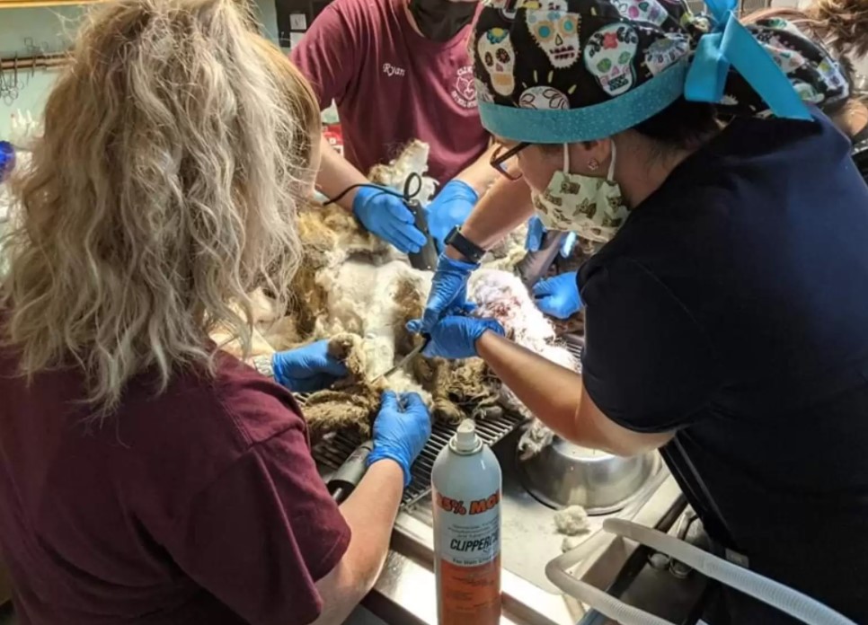 Burns and a team of groomers and medical professionals immediately sedated the dog and started freeing him from his fur prison.