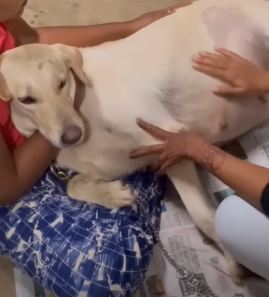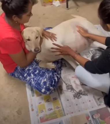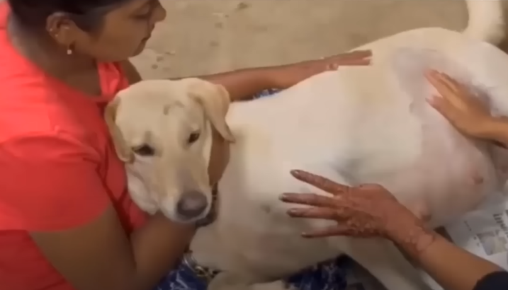 A mother dog was abandoned in front of Saahas ForPune shelter on New Year Eve. It’s about 8.5 month pregnant and nearly giving birth. The team must to give massage to support the baby giving process.