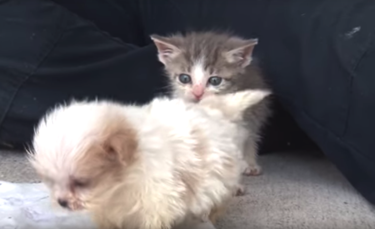 Ruggles the Shih-Tzu puppy was rescued from a puppy mill and taken to a place to start a brand new life. He was introduced to a new friend to signal this new beginning, and this unlikely pal was also rescued from an unfortunate situation. Chompers the kitten was found alone under a porch at only two days old. Watch below as they meet each other for the first time, writes ilovemydogsomuch
