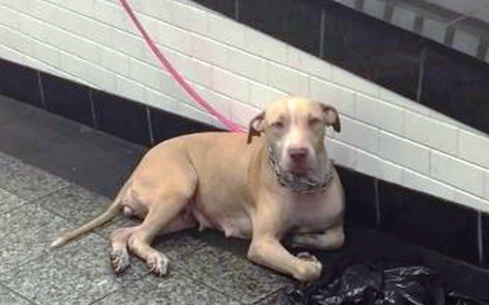 Betsey the abandoned Pit Bull was found tied to a railing on a New York subway platform during rush hours, writes ilovemydogsomuch