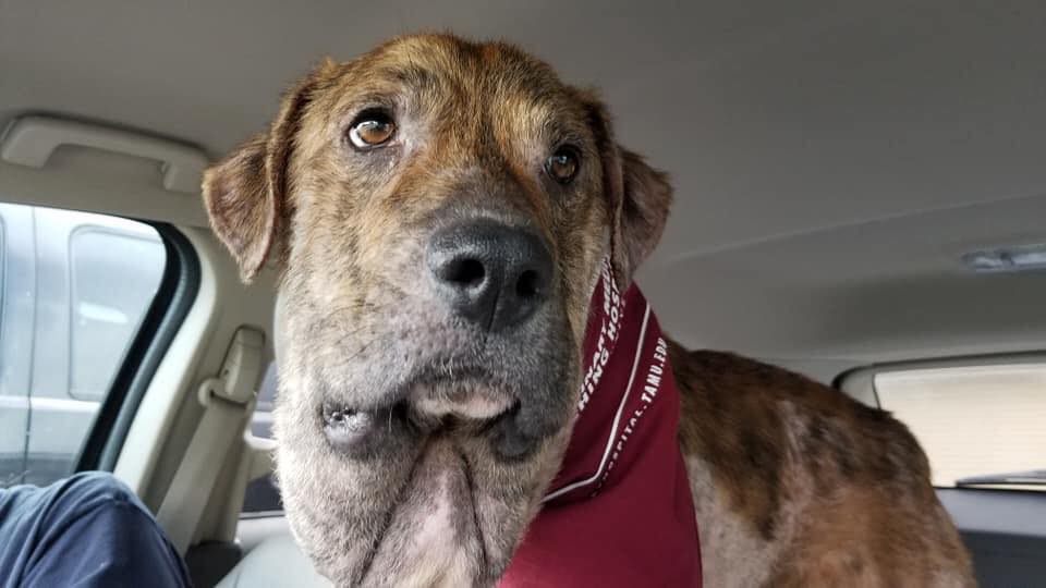 They immediately brought him to a vet for medical care and then took him to a soft-tissue specialist where he underwent surgical removal of the scarred tissue. After surgery, his swollen head finally shrunk back to a normal size.