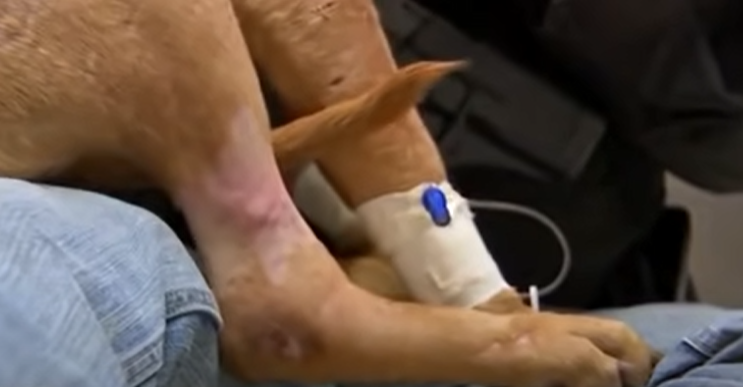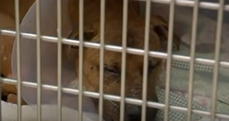 Russ Harper, a humane police officer with Justice Rescue, can’t believe a severely abused Pit Bull who was left for dead is actually even able to get up. Harper got the call Monday night around five o’clock that someone had dumped the dog at 6th street near Caldwell in Chester City.