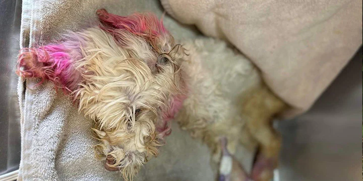 The 6-month-old poodle combine was discovered unresponsive and in essential situation deserted in a discipline. She was rescued simply in time and arrived at Second Probability Rescue NYC Dogs emaciated with contaminated wounds and acid burns protecting her tiny physique from coloration dye unfold throughout her fur coat.