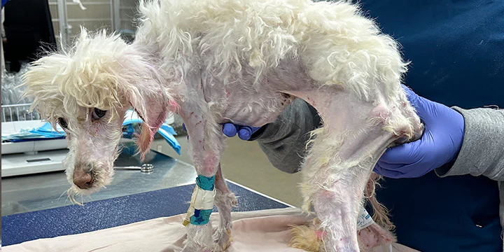 Emaciated Poodle With Acid Burns Found Unresponsive In Field Has Long Road To Recovery