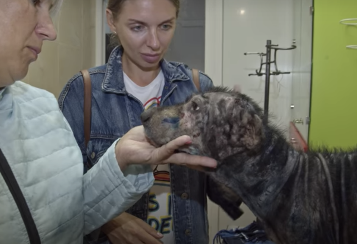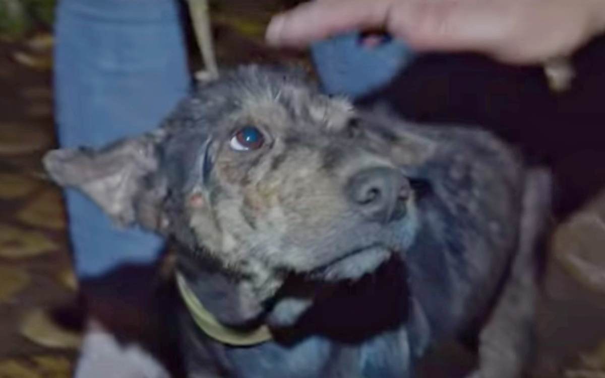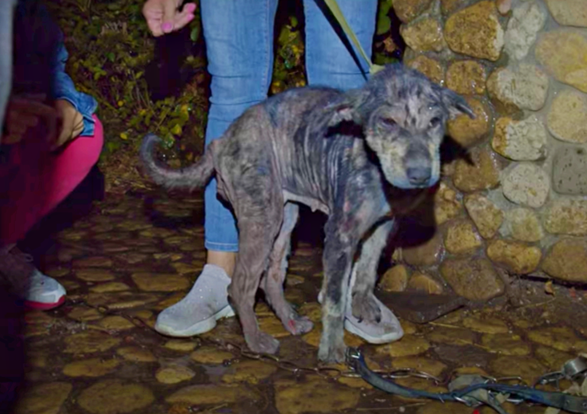 The poor pup had been living on a chain outside for five years. She was emaciated and lost all her fur from advanced mange. Her owner didn’t feed her or give her any affection.