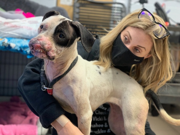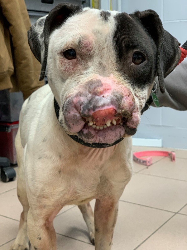 On closer inspection of the precious pup, she had disfiguring facial injuries and was clearly a victim of dog abuse. Her eyes sunk, her body posture was low, and without intervention, she would certainly perish alone in the park. The kind folks at the Pennsylvania SPCA took her in and named her Lavendar, or Lovie, as they started calling her. Poor Lovie would need a lot of love and attention, but the rescue group dug right in to help.