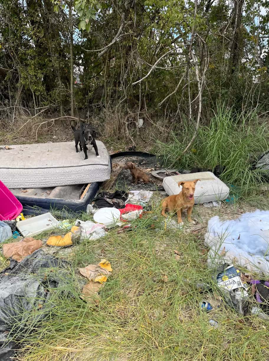 Amidst heaps of discarded debris and worn-out mattresses, two stray dogs had sought refuge, creating a sorrowful sight. Concerned for their well-being, the Good Samaritan wasted no time and contacted the Houston Dog Outreach Guardians for assistance.