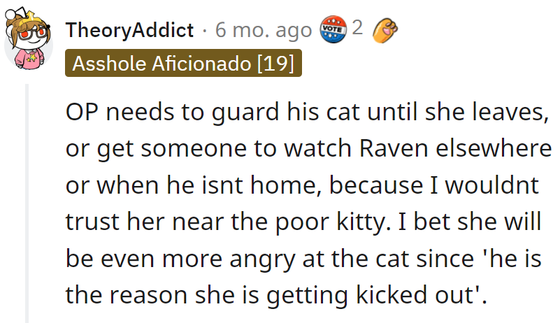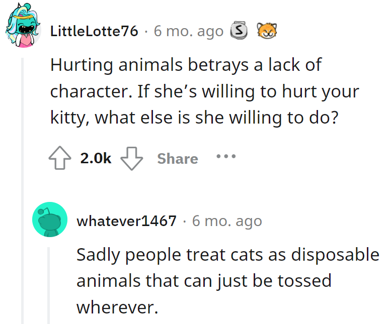 Concerns were raised that this behavior could extend beyond the pet to potentially encompass the cat as an outlet for her anger.