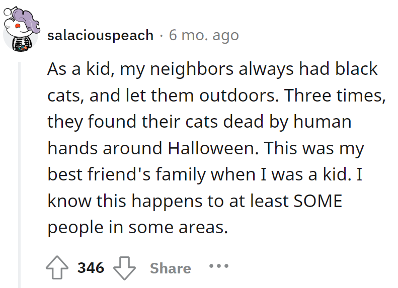 Numerous comments highlighted the proximity of the incident to Halloween, when black cats encounter heightened risks.