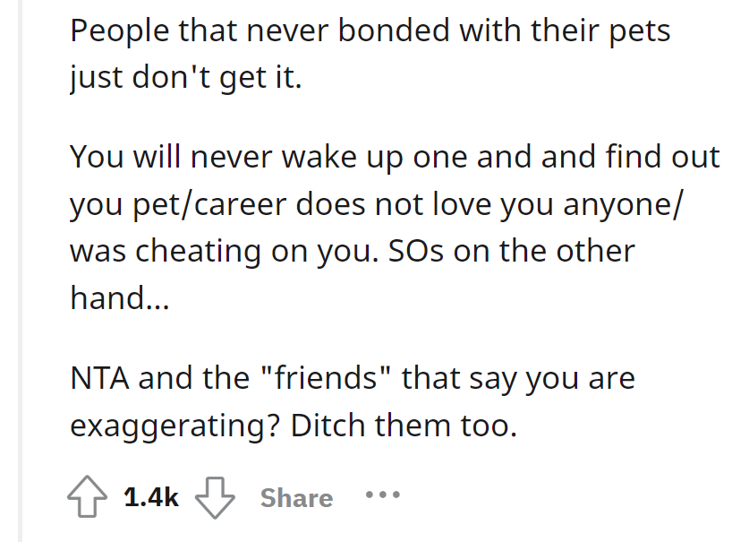 Yet, I must acknowledge that observing how someone treats an animal can reveal a lot about their character. It can shed light on their capacity for empathy, particularly in their interactions with pets. It’s understandable that relationships can be intricate, and not everyone may share an affinity for pets – a viewpoint that carries its own validity. Nonetheless, it remains crucial to engage in open discussion regarding scenarios that impact both partners before reaching decisions. The act of evicting a partner’s pet, however, is an act I find truly deplorable, without any possible justification.