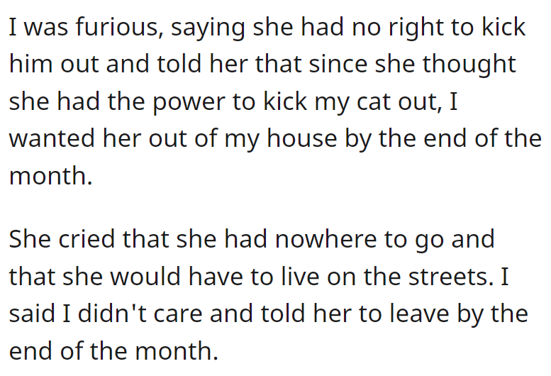 His decision stemmed from a distressing action: she had cast his cat out onto the streets.