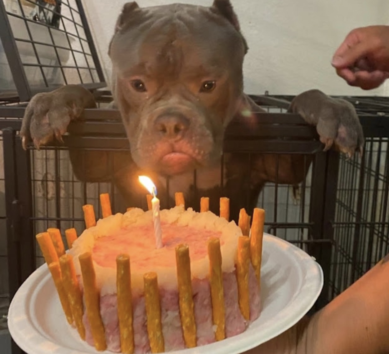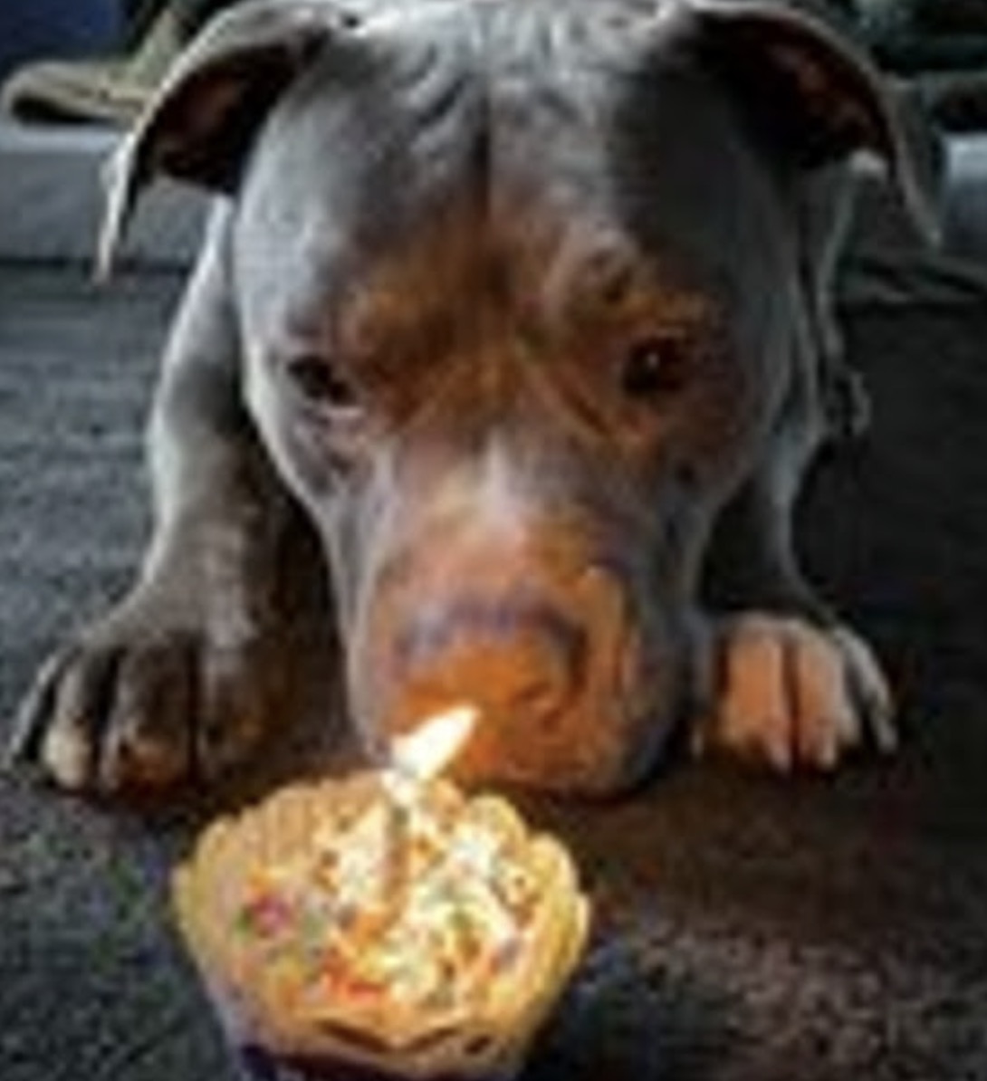He had a happy birthday! When the homeless dog celebrated his first birthday at the animal shelter, he sobbed with delight.