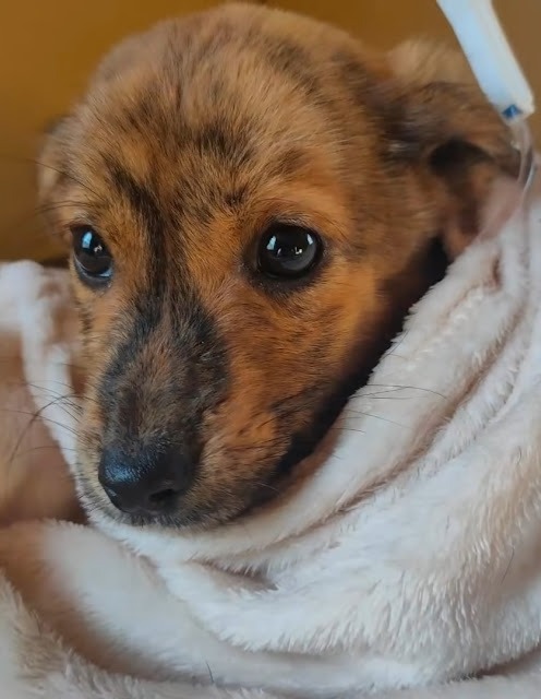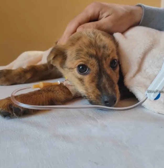 He was rescued by a farmer next door, then this kind man called The Stray Paws team rescuer. The baby was taken to Vet in a state of extreme emergency. The tests have been passed.