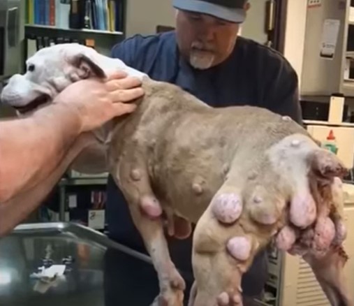 He was dumped on the street by his owner because his body covered hundreds huge tumors