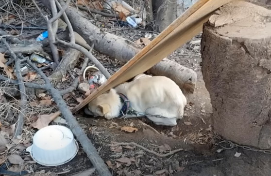 Whole life was chained in scared and cold, he eat waste food and dirty water for survived!