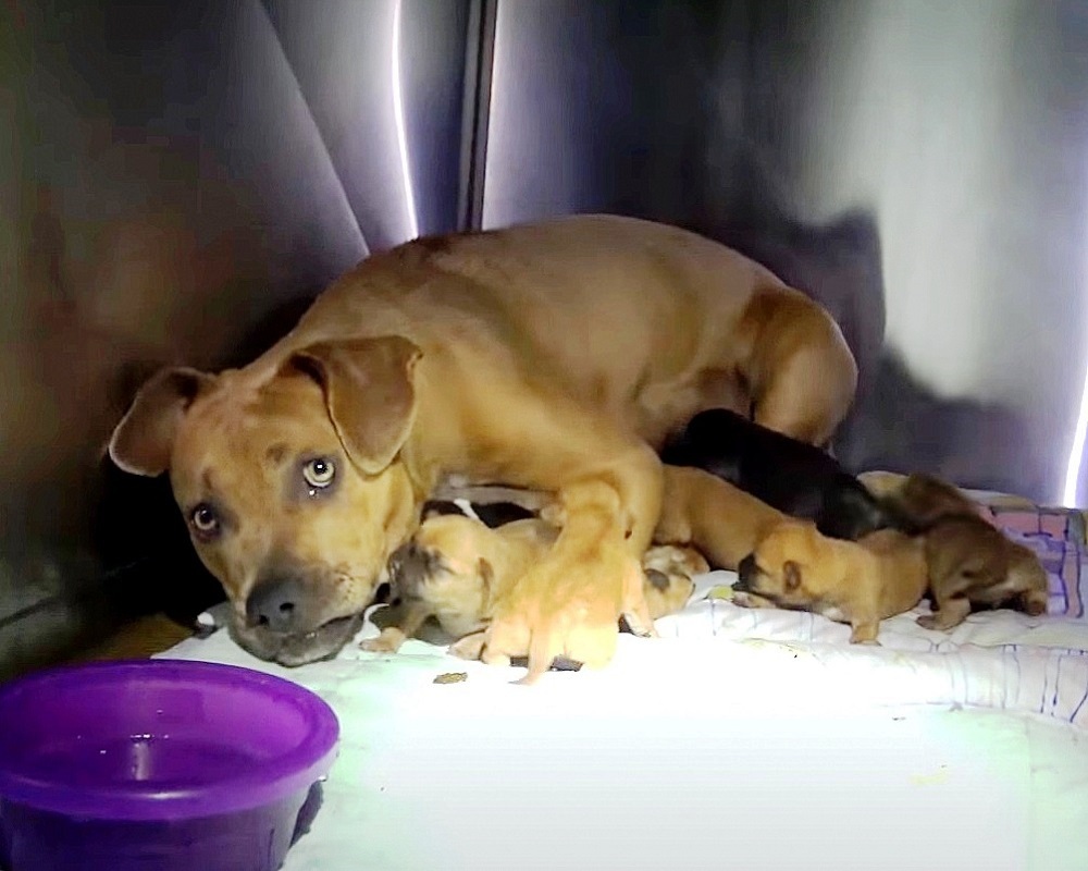 Homeless Mama Dog Kisses Her Puppies One By One As Rescuer Pulls Them To Safety
