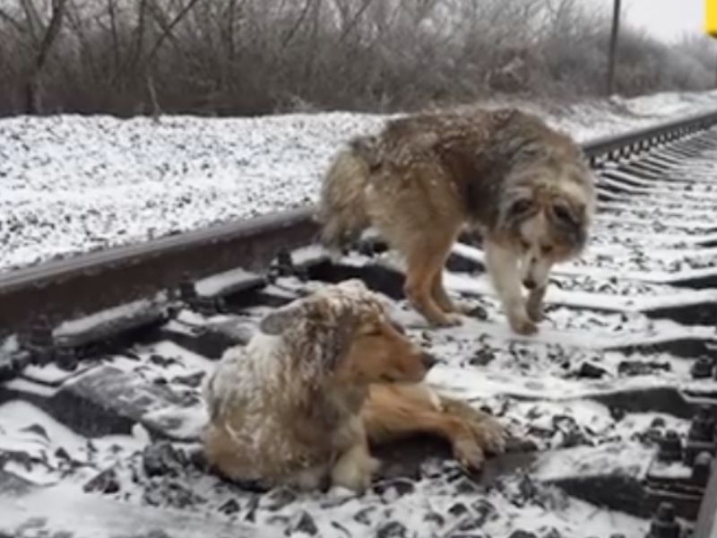 Hurt dog stuck in railroad track for 2 days protected by loyal brother who refused to leave