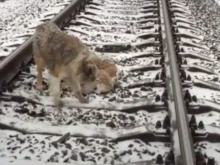 With Lucy adhered to the tracks, she relied on Panda to bring her food. It was clear that Panda’s only top priority was keeping his sister safe. He additionally maintained her warm as the two snuggled with each other in the chilly Ukrainian weather condition.