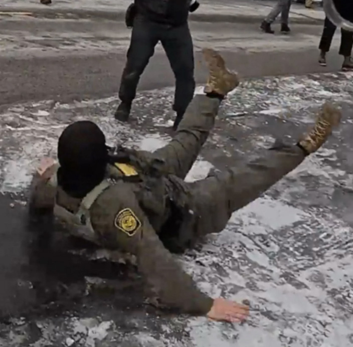 Everyone’s wondering the same thing after ICE agent slips on ice in viral video