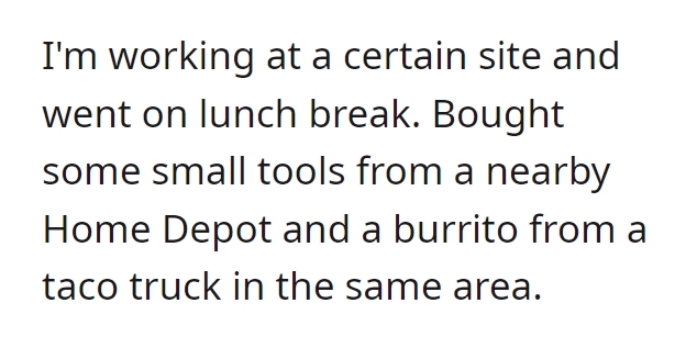 Our protagonist is innocently savoring a burrito just outside the store’s vicinity.