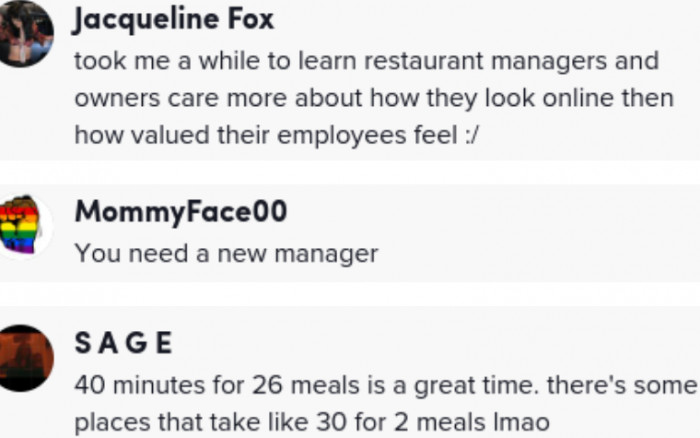 TikTok comments weighed in, criticizing both the “Karen” and the server’s manager for permitting such behavior. Many highlighted the fact that such attitudes seem to be rewarded by management.