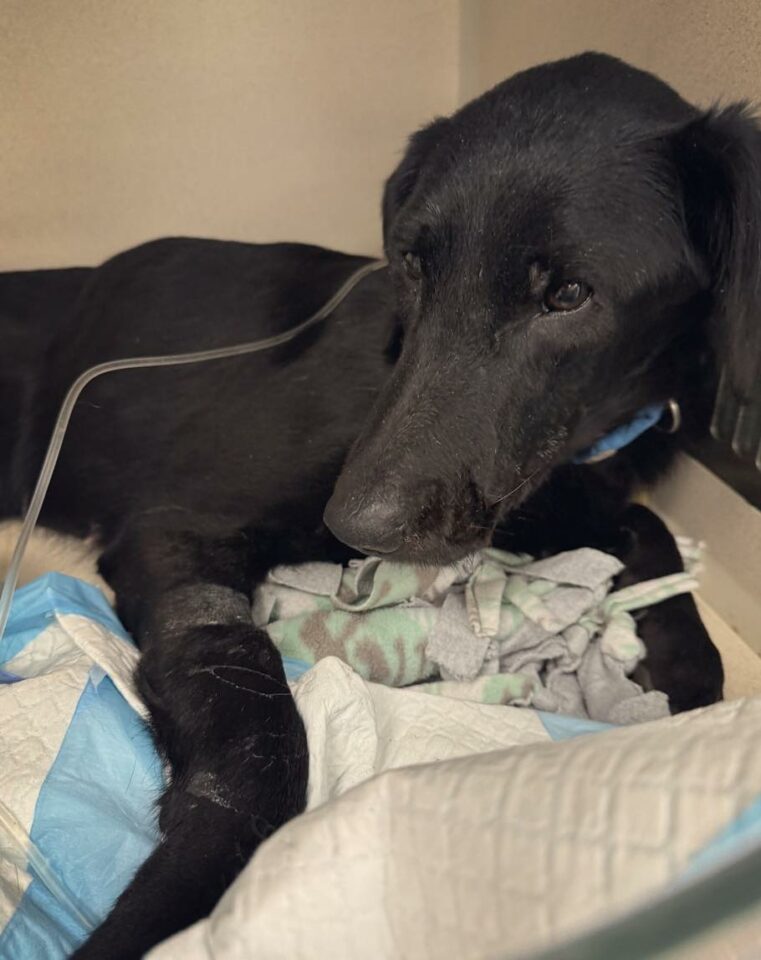 The vet group began giving her IV fluids. Since she had labored respiration, the doggo was placed on oxygen.