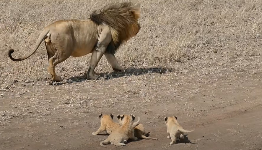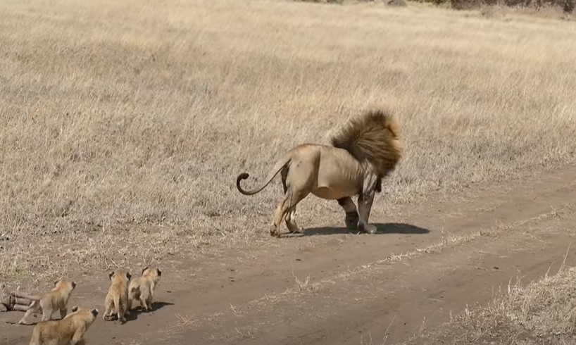 Lion dad tries to ditch his tiny cubs in heartwarming footage