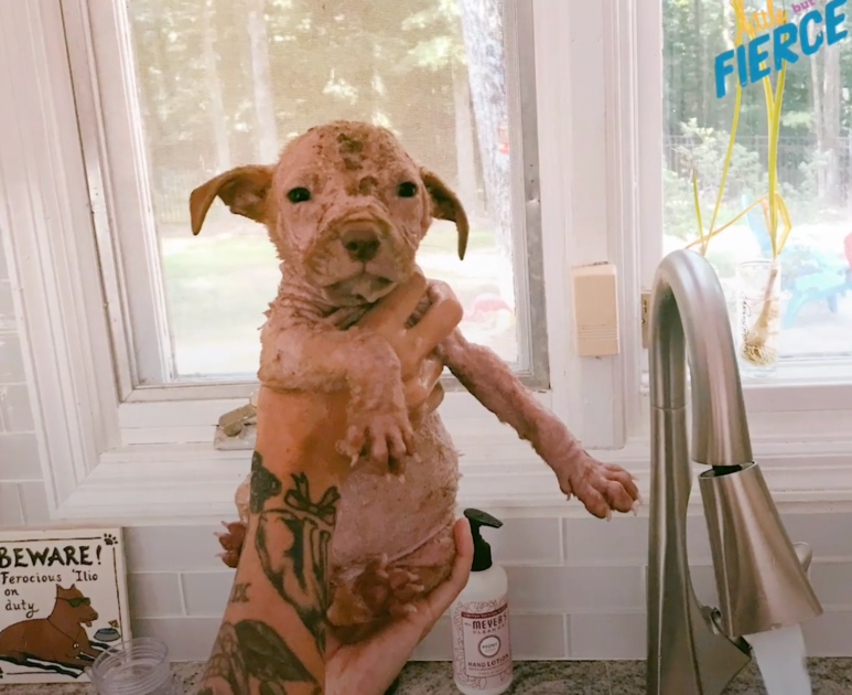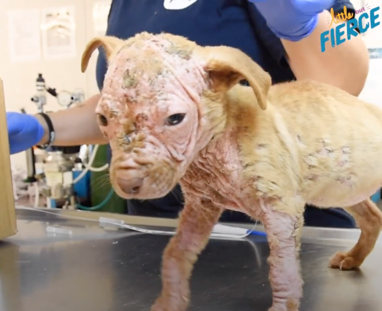 She was found all alone, wandering in a neighborhood. She was so tiny and vulnerable. Her skin was in such bad shape that it appeared she was suffering from intentional burns.