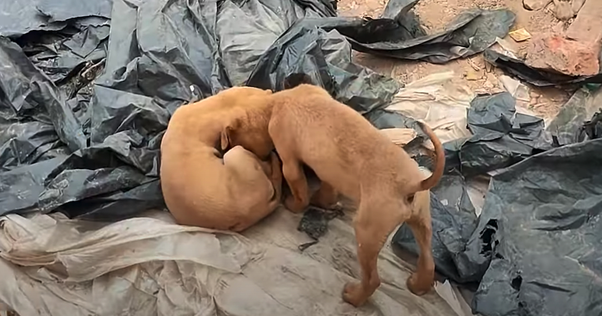 Little Puppy Nudged His Head Near Motionless Brother Wanting Him To Play