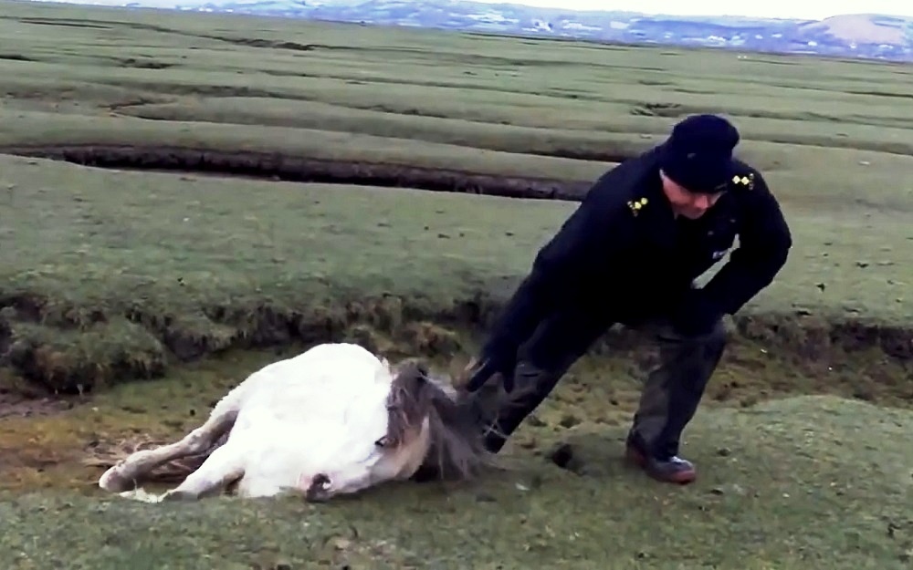 The Loughor Estuary in Gower, South Wales, is a picturesque marshland that’s inhabited by many animals. When one mare and her foal were roaming around the uneven terrain in the marshland, and unfortunate accident caused the pair to panic, writes ilovemydogsomuch