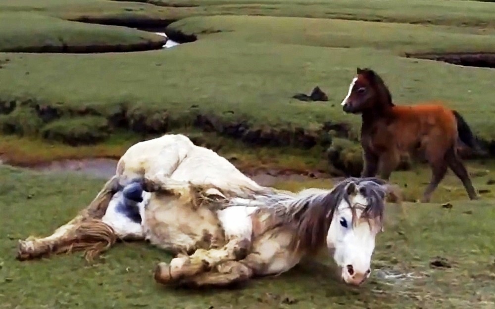 Mama Horse Gets Badly Entangled & Falls, Foal Panics As He Sees Tide Approaching