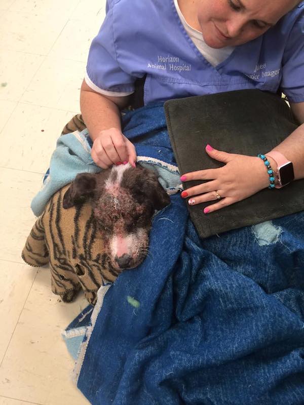 “He is very also emaciated and can’t eat because of burns on his tongue,” Joleen Wiggam Hansen with the Horizon Animal Hospital wrote on Facebook. They also believe he is suffering burns to his intestinal track.
