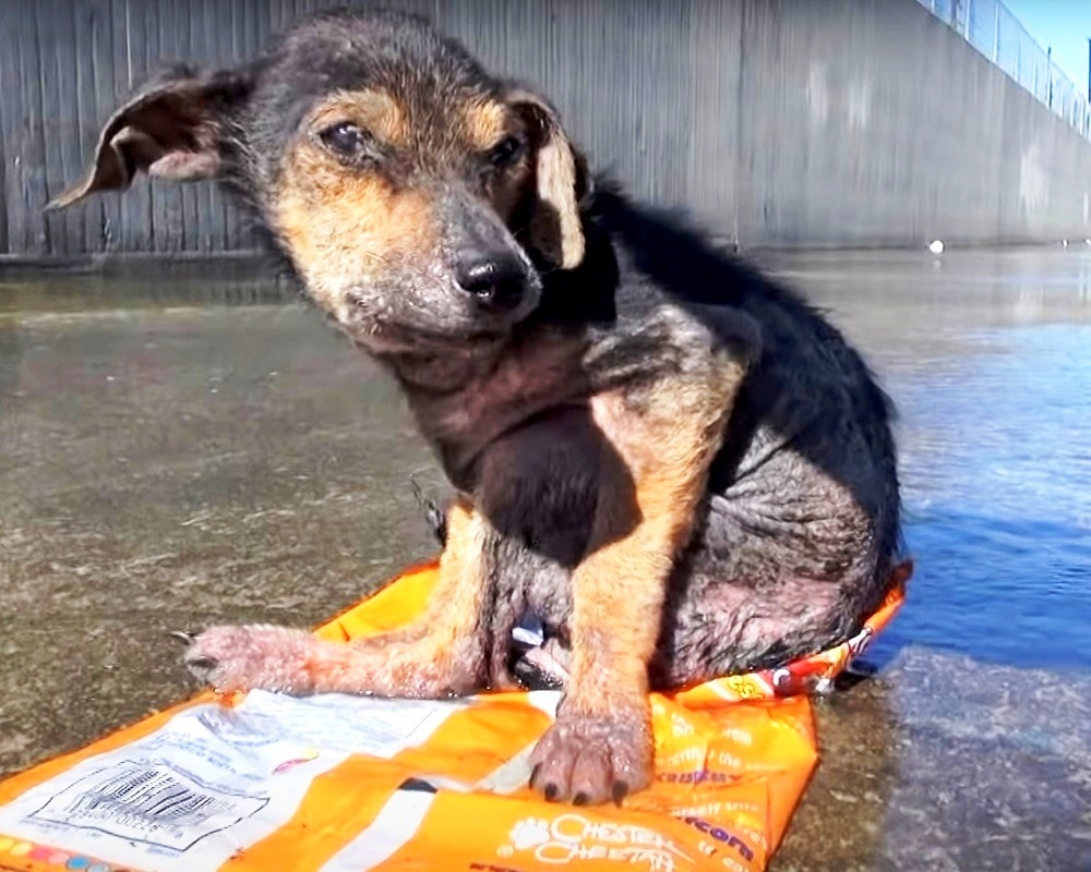 For 2 days, Jordan held on to an empty chips bag in the river and tried his best to stay afloat. By the time he was found, he was severely dehydrated while his mutilated leg had festered. The rescuers climbed down the embankment to rescue Jordan, but the dog was barely alive.