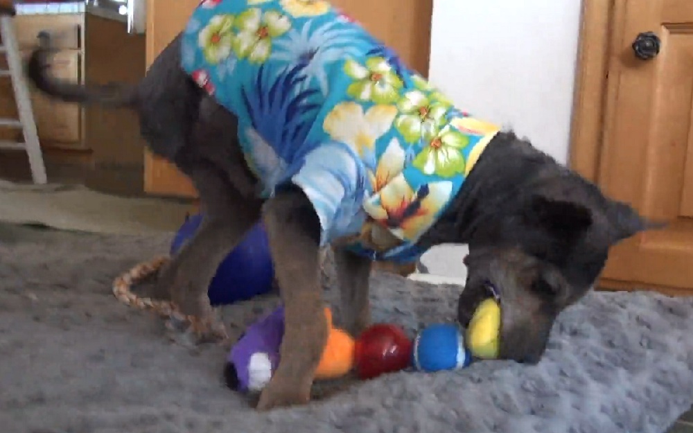 The leg surgery was a success, but Jordan still had to deal with mange and bacterial infections. In the meantime, he was moved to his foster home where his foster mom and doggie siblings constantly motivated him to keep fighting. With continuous physical therapy and emotional support, Jordan recovered fully and blossomed into a beautiful and spirited dog!