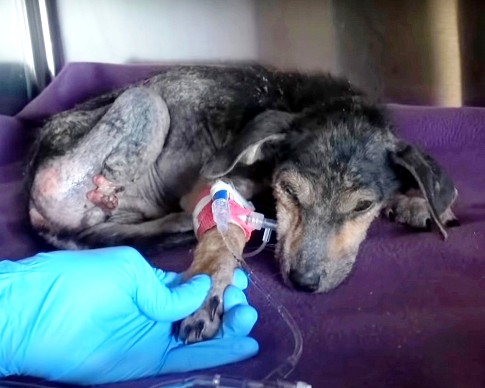 Jordan was rushed to the hospital in a critical condition, where the vets were quick to establish that the dog’s survival was unlikely. He needed a surgery and blood transfusions to deal with the infection from his severed leg, but he was too weak to be operated on.