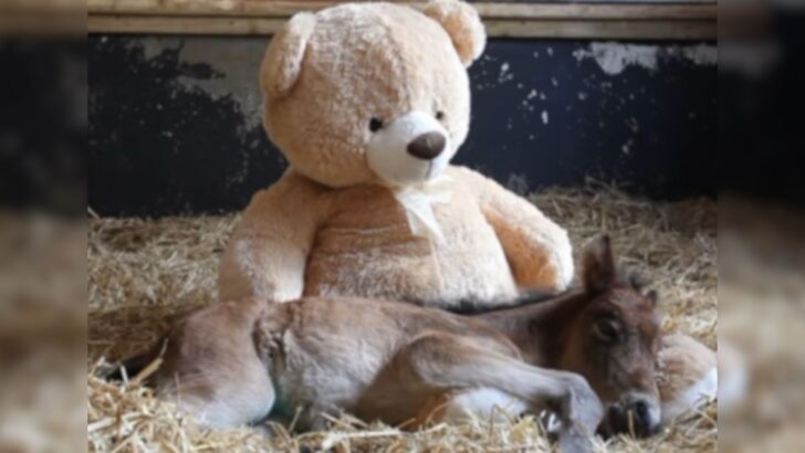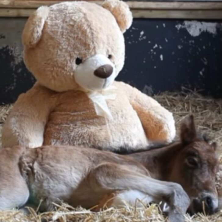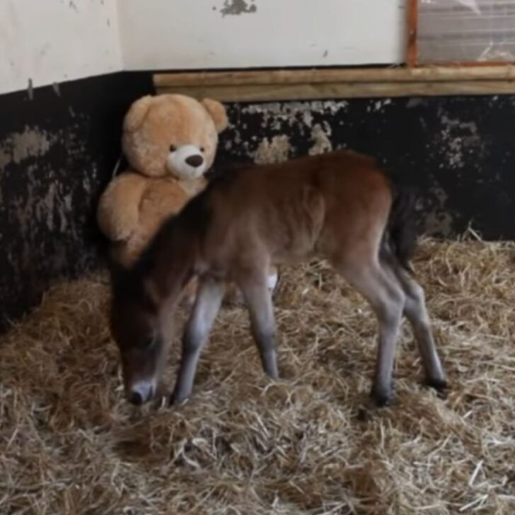 Nevertheless it wasn’t simply the medical care that helped Breeze heal. He discovered an unlikely supply of consolation in a big stuffed teddy bear positioned in his stall.