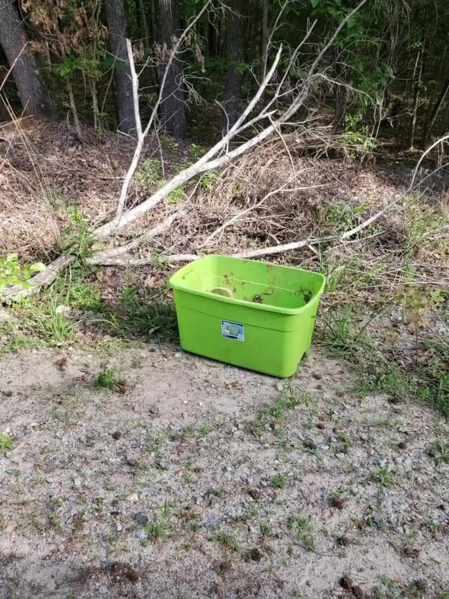 A resident of Anson County, North Carolina, was out and about one day when they spotted a green bin sitting alone along the edge of some woods. Curious and a bit confused, they wandered over to peek inside — and were horrified to discover five tiny puppies, writes thedodo